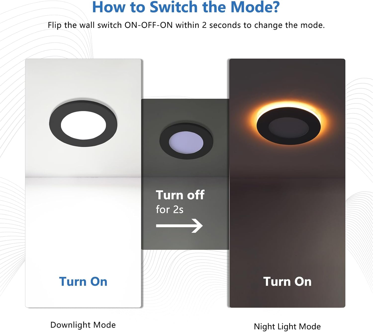 When one switch controls multiple recessed lighting 4 inch in different modes, turn off the lights over 8 seconds and turn it on again, then the recessed lights will reset to downlight mode.