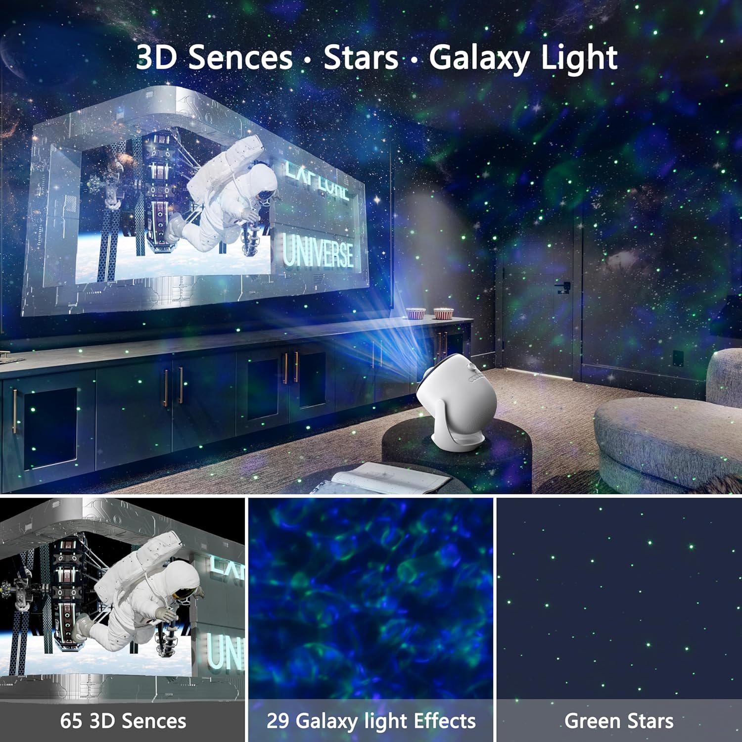 3D Galaxy Projector, AIRIVO 3D Visual Star Projector with 65 3D Scenes, Night Light Projector with Bluetooth Speaker, Stars and Background Lighting Effects for Room Decor, Kids Adults, Christmas Gifts