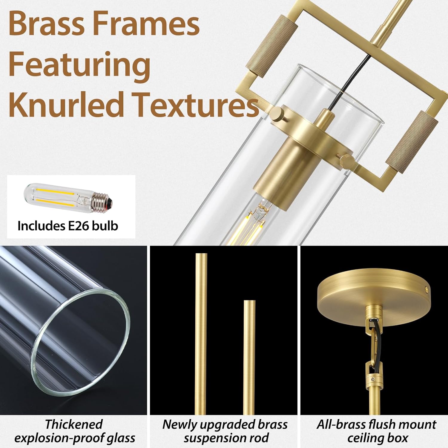 PIOUTNF Modern Brass Glass Pendant Light with Knurled Texture-12 Inch