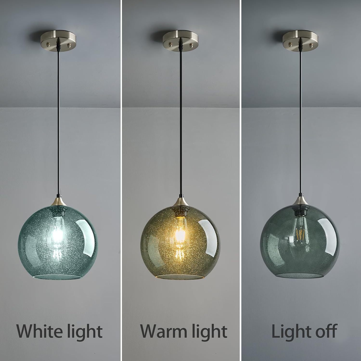Gray Green Glass Pendant Lights Kitchen Island Lighting Globe Pendant Light Fixtures Modern Pendant Lighting for Kitchen Island Bedroom Living Dining Room Light Fixture(9.84in, 3-Pack)