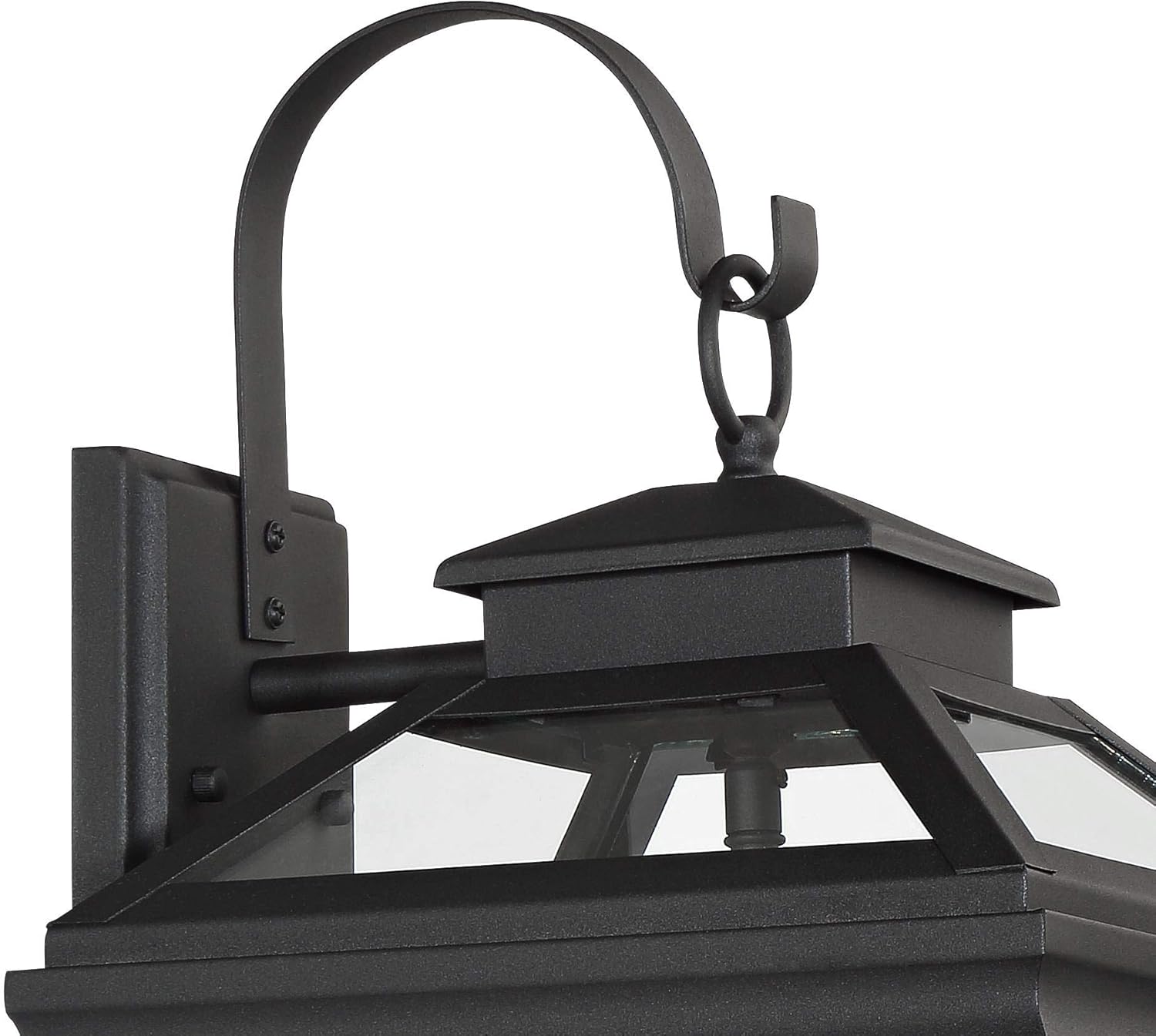 Brighten up a dark patio or garage space with this four-light outdoor wall light. It comes in a textured black finish over a steel frame, with clear glass panels that give a full view of the bulbs inside. Modeled after traditional lantern styles, this outdoor lighting fixture is sure to add elegance to your home.