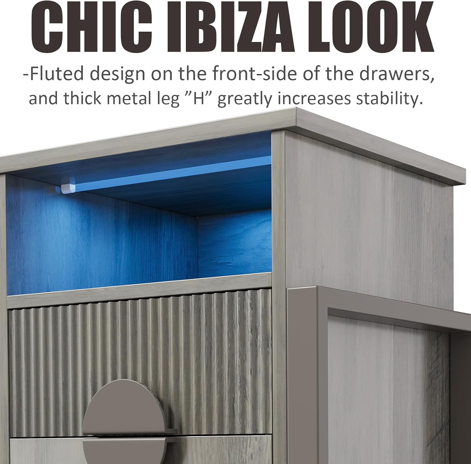 - This chest cabinet is elegant in workmanship, fluted design on the front-side of the drawers, creating a personalized and distinctive aesthetic.