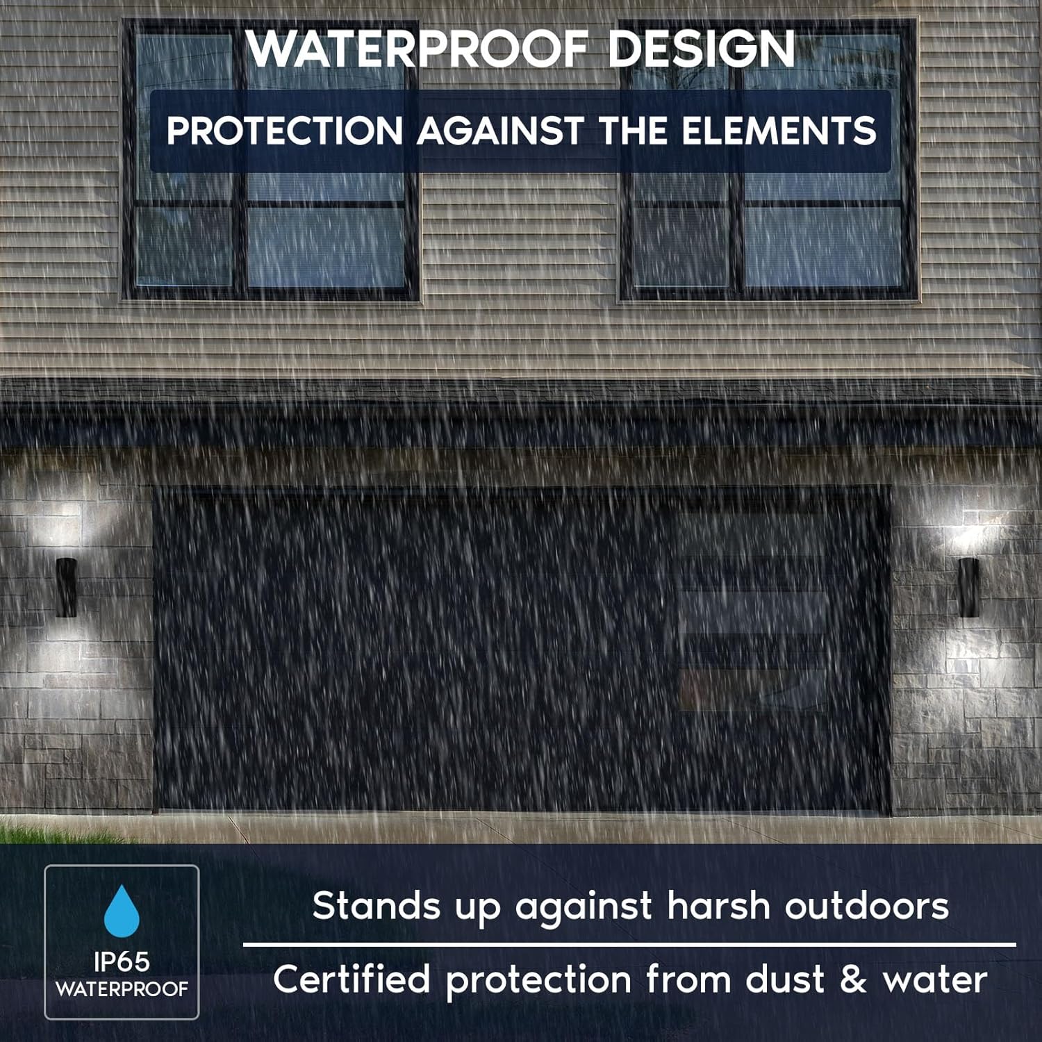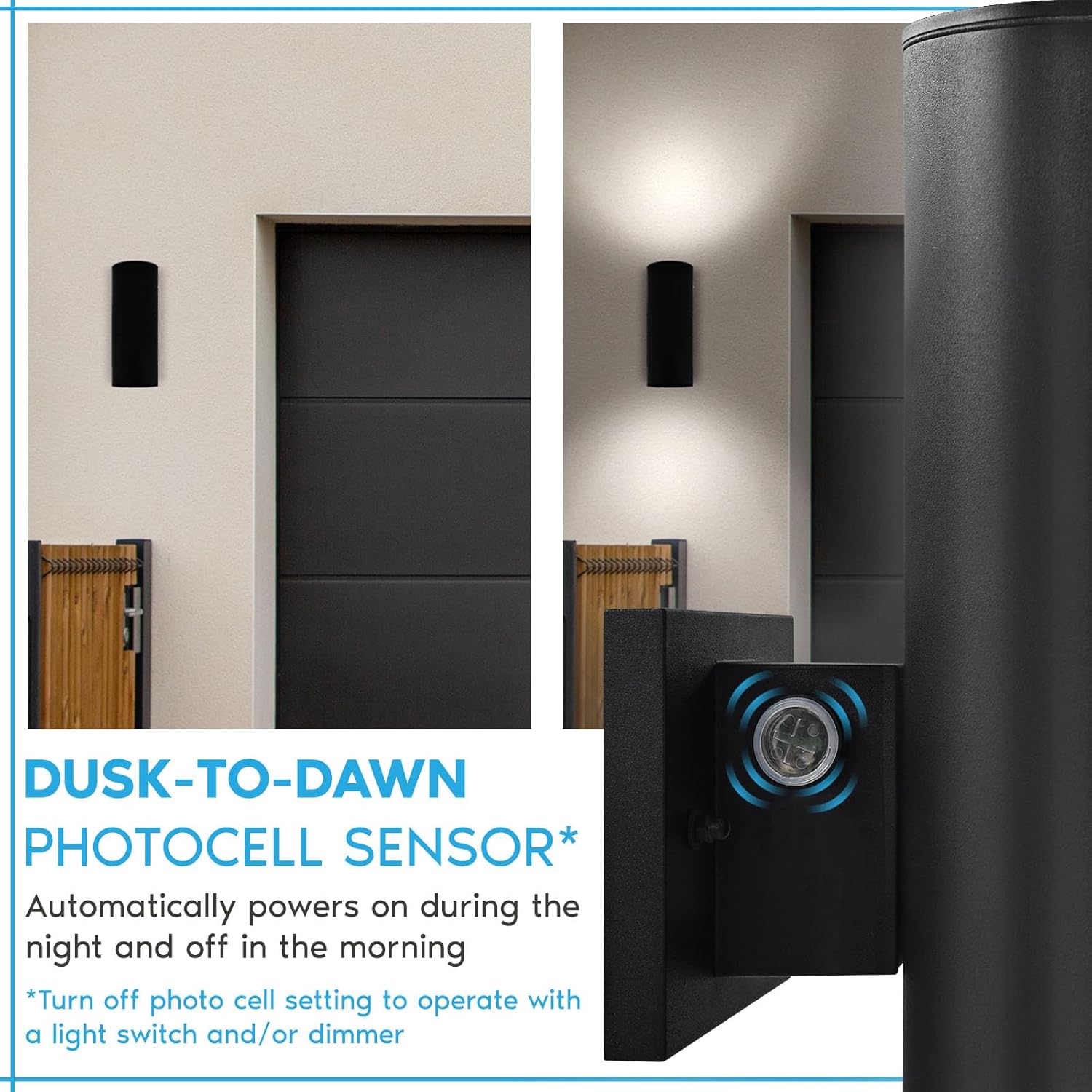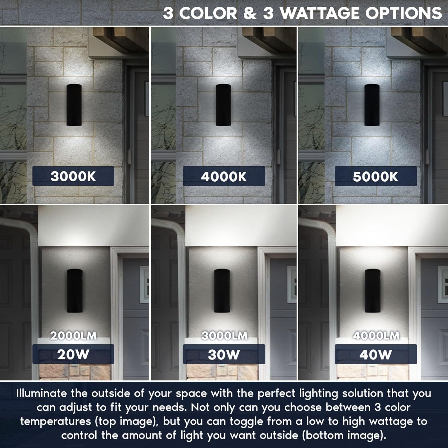 LUXRITE Dusk to Dawn LED Modern Outdoor Wall Lights, 18", Up or Up and Down Light, 3CCT 3000K-5000K, Waterproof Cylinder Wall Sconce, 20/30/40W, Dimmable, IP65, ETL - Porch Patio Garage (2 Pack)