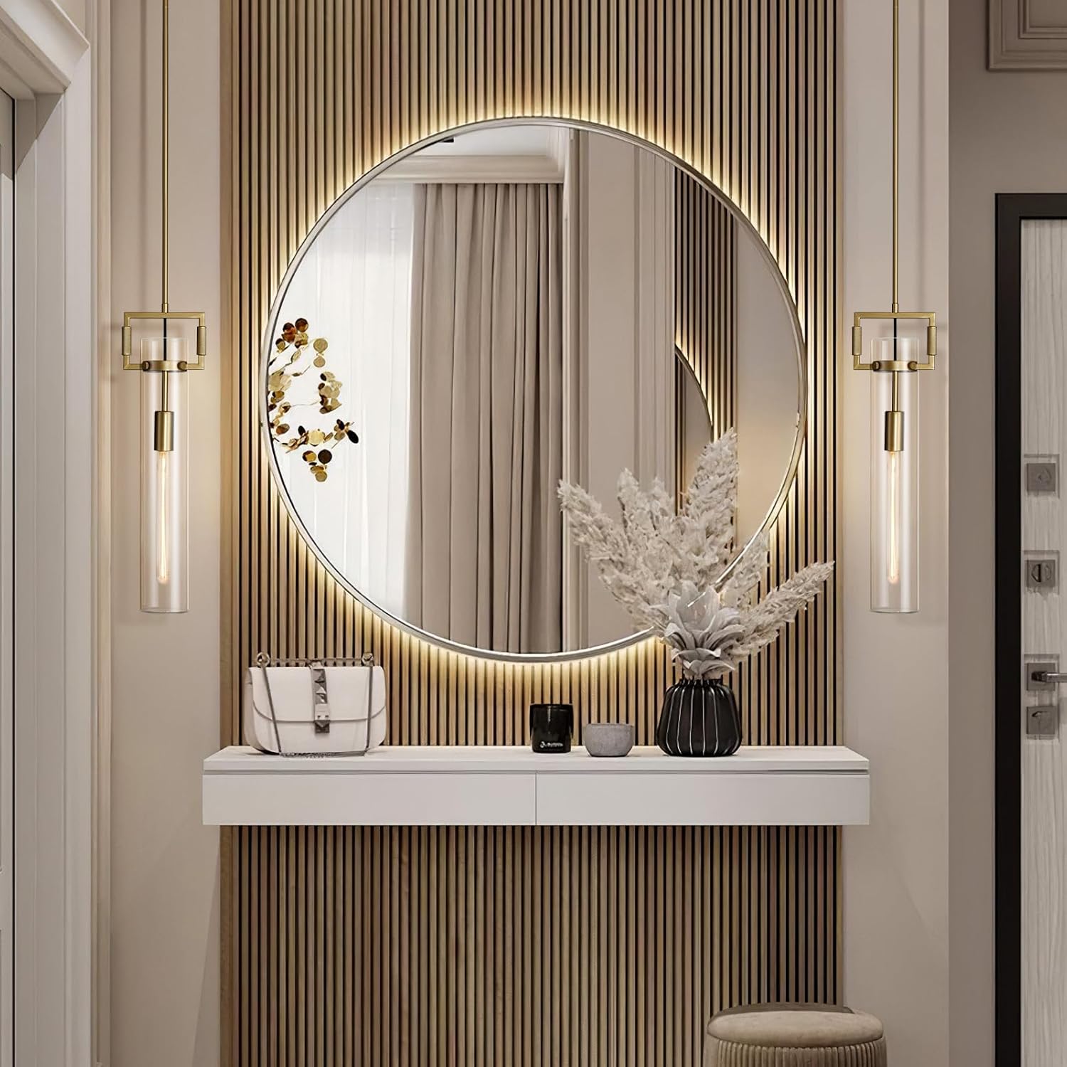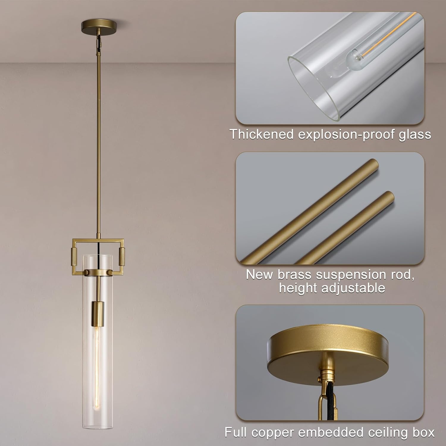 Modern Gold Pendant Light Fixture Set of 2-21.6 Inch Adjustable Hanging Chandelier with Glass Shade & Brass Finish, Large Farmhouse Island Lighting for Kitchen, Dining Room, Bathroom